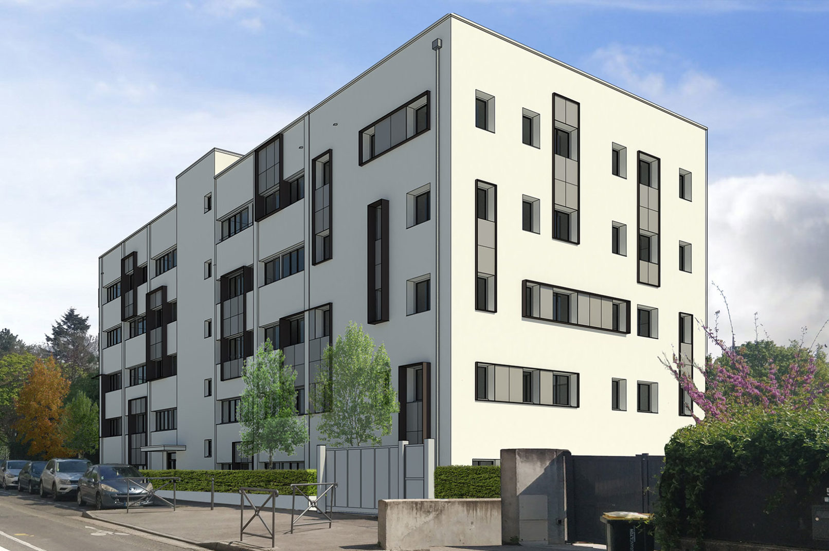 Réhabilitation et extension d’un ancien immeuble de bureaux en résidence étudiante qui développe 104 chambres sur 6 niveaux, De nombreux espaces communs pour répondre au mieux à la demande des futurs utilisateurs.