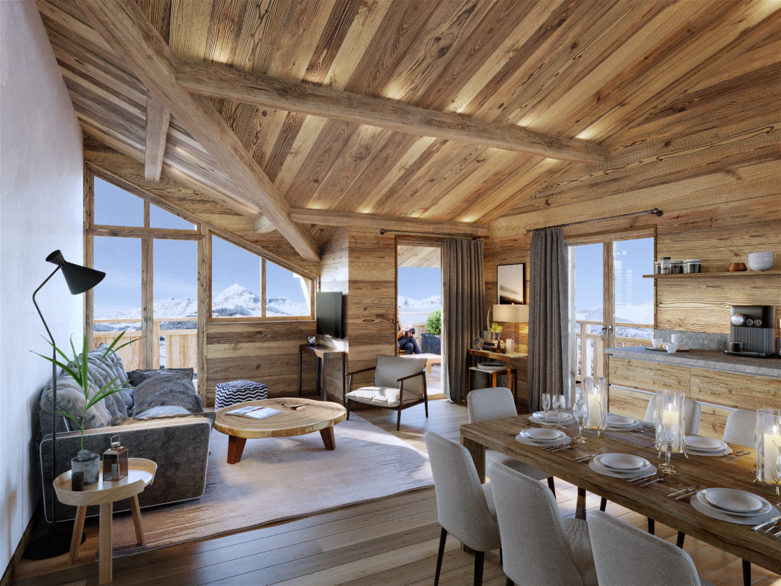 C’est un véritable observatoire sur la canopée végétal et la vallée toute entière. Cette résidence surplombe le Val d’Arly et offre un panorama exceptionnel.